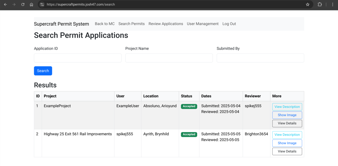 April 4th marked the public launch of the new Supercraft Permit System with Version 0.1.0, with Version 0.2.0 coming a few days later on April 10th and visually bringing the site up to the present decade.